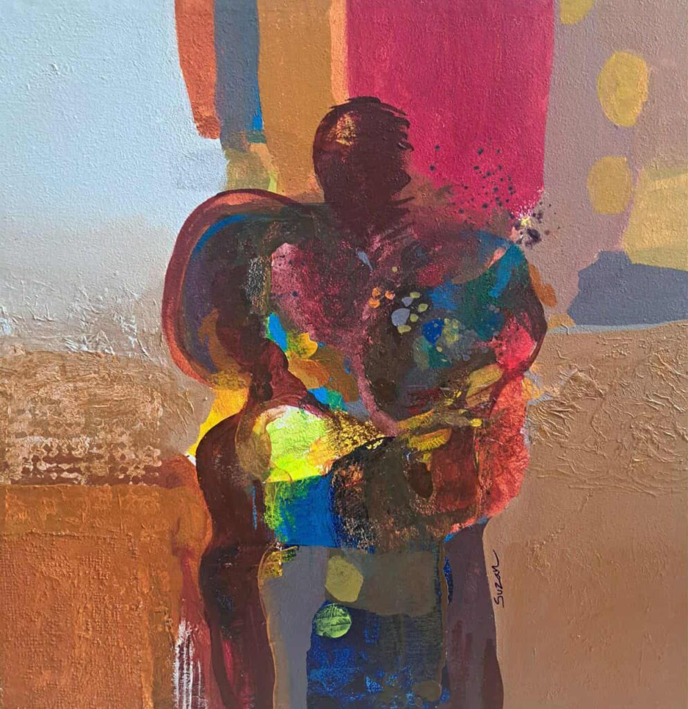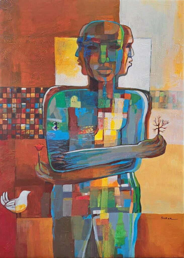 يغلب على إسلوبي الفني الإسلوب شبه التجريدي في أعمالي، أضفي عليها نوع من الرمزية على مستوى الموضوع والفكرة واللون مستوحاة من المشاهد والرؤى والتنوع الثقافي في السودان وكل ما يتعلق بالإنسان في علاقته بالبيئة والمكان . أستخدم وسائط أغلبها ألوان الأكرليك بأنواعها على كانفاس أو ورق أو خشب، كما أقوم دائماً بإدخال وسائط متعددة في العمل الواحد مثل الغراء ومناديل الورق والرمل والكرتون ومعجون الأكرليك في خلق ملامس متنوعة، بالإضافة إلى استخدام الأحبار والألوان المائية والأويل باستيل أحياناً.بالتأكيد لوحاتي تعكس الثقافة التي أنتمي اليها وروح الوطن الذي نشأت به، فأستدعائي للعناصر والرموز ما هي إلا صور قابعة في الذاكرة ، وإبراز التنوع الثقافي وثرائه بالسودان هو من جل إهتمامي.حدثينا عن جائزة الريفييرا الفرنسية…